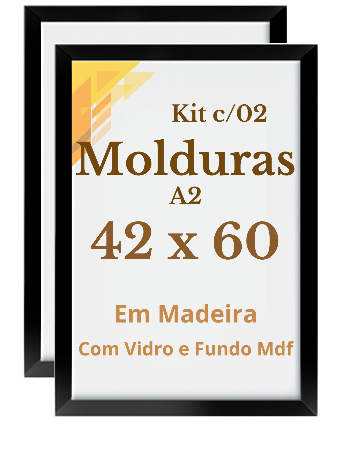KIT 4 QUADROS 42x60 PADRÃO A2 COM MOLDURA DE MADEIRA
