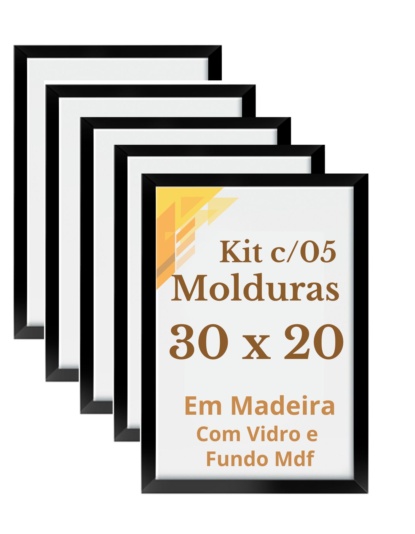 KIT 5 QUADROS 30x20 COM MOLDURA DE MADEIRA COM VIDRO